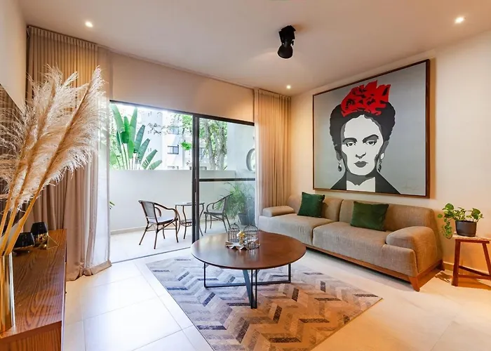 An equipped kitchenette with coffee and tea makers, a refrigerator, and an oven is available as part of the apartment's self-catering amenities. The nearest airport is Playa Del Carmen, Quintana Roo airport, 5 km from Lafrida Condo Coto 8 Style 10 Min To Caribbean! in Playa del Carmen.